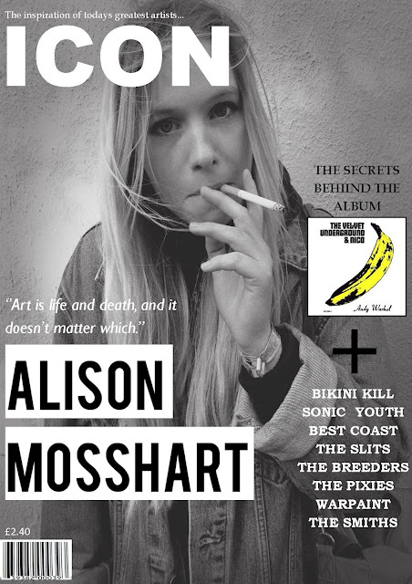 When I first started researching existing successful music magazines I had a clear view on what I wanted to create. An alternative indie music magazine that would feature iconic artists that have inspired today’s artists. I throughout the process stuck to that brief however when researching existing magazines found that mine needed to be more widespread as I found that magazines such as “Kerrang” are very niche and I didn’t want mine to be that way. I think that through expanding the audience so that it’s less specific and niche that I would open up my magazine to a lot larger audience however still remaining ‘indie’. My target audience is teenagers who enjoy the alternative genre of music. For this reason I tried to include a lot of ‘rebellious’ acts in my music magazine such as smoking which connotes coolness and black clothing connoting rock. Traditionally teenagers are at the age of rebellion and aiming to be controversial, therefore I used a unusual quote on my front cover “Art is both life and death and it doesn’t matter which” alongside the dominant image of a girl smoking, this instantly would entice my target audience of a rebellious teenager. My magazine is for both genders, therefore I have not used a colour scheme that would prevent either gender from reading it. It’s neutral as it’s black and white. Due to the age of my audience they would be from the D to C-2 category on the social demographic, this is due to their age, they would not have a profession. I aimed for my music magazine to be like NME, however mine to have the unique selling point in that it not only focuses on new bands but a lot more on older bands and how they’ve influenced the new. It’s the same target audience though, when researching I found out that their target is teenagers, this reinforced my idea to aim for teenage readers. It is even clear who my target audience is from the advertisements I have used, I placed one for the alternative music festival “Coachella” on the contents page. Coachella’s target audience is teenagers and people in their early twenties, the same niche audience that would be reading my magazine.